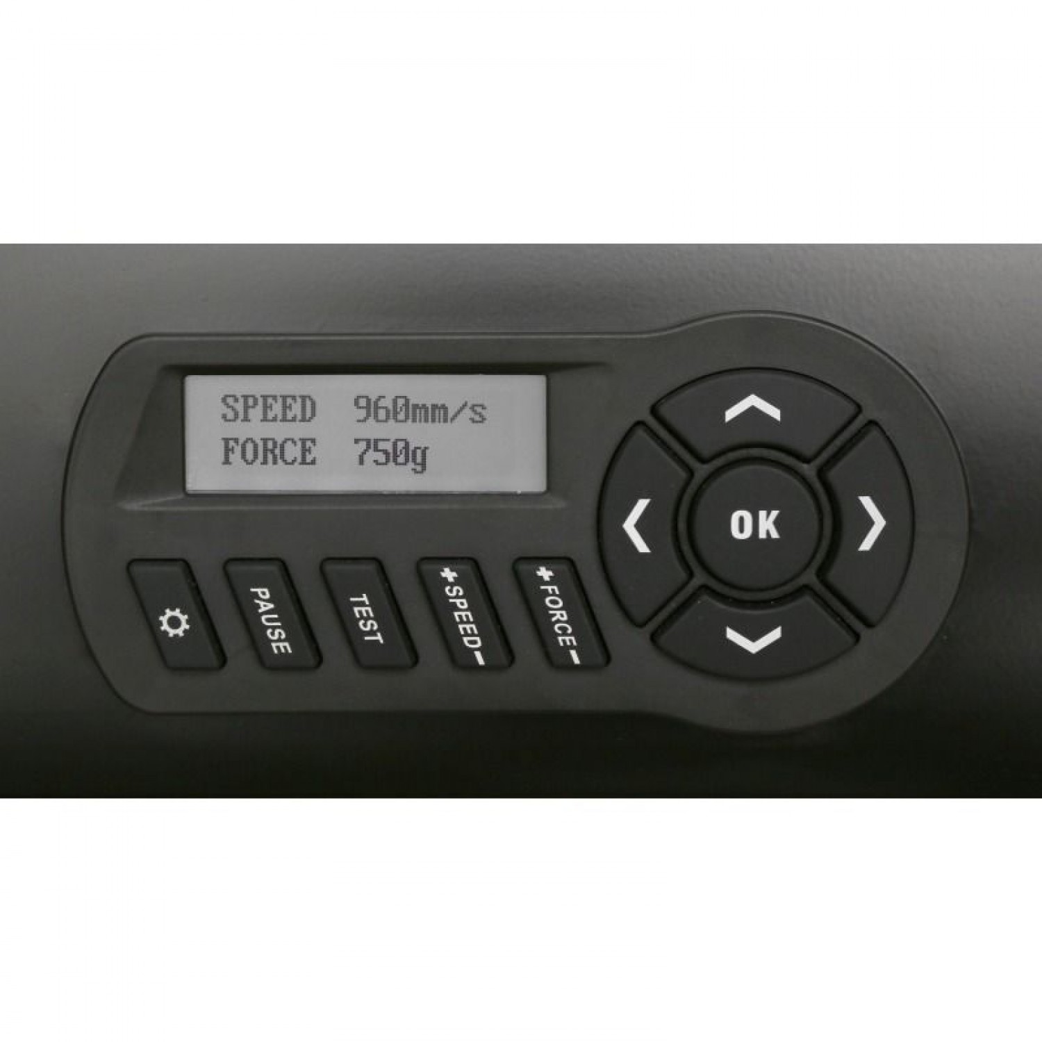 Le traceur est équipé d’un écran LCD rétroéclairé et de touches de commande ergonomiques qui facilitent la navigation dans les menus. Les réglages de pression, de vitesse ou de mode de découpe sont accessibles et modifiables rapidement, même pour les utilisateurs peu expérimentés. Le logiciel DrawCut PRO, inclus avec le traceur, est un outil puissant permettant non seulement la vectorisation et l’imbrication de motifs, mais aussi la gestion du LAPOS Q, la création de marques de repérage et l’optimisation des contours de découpe. Il comprend également des fonctions avancées comme le traitement de séries, la création de lignes de découpe automatiques, et l’organisation intelligente des tâches.