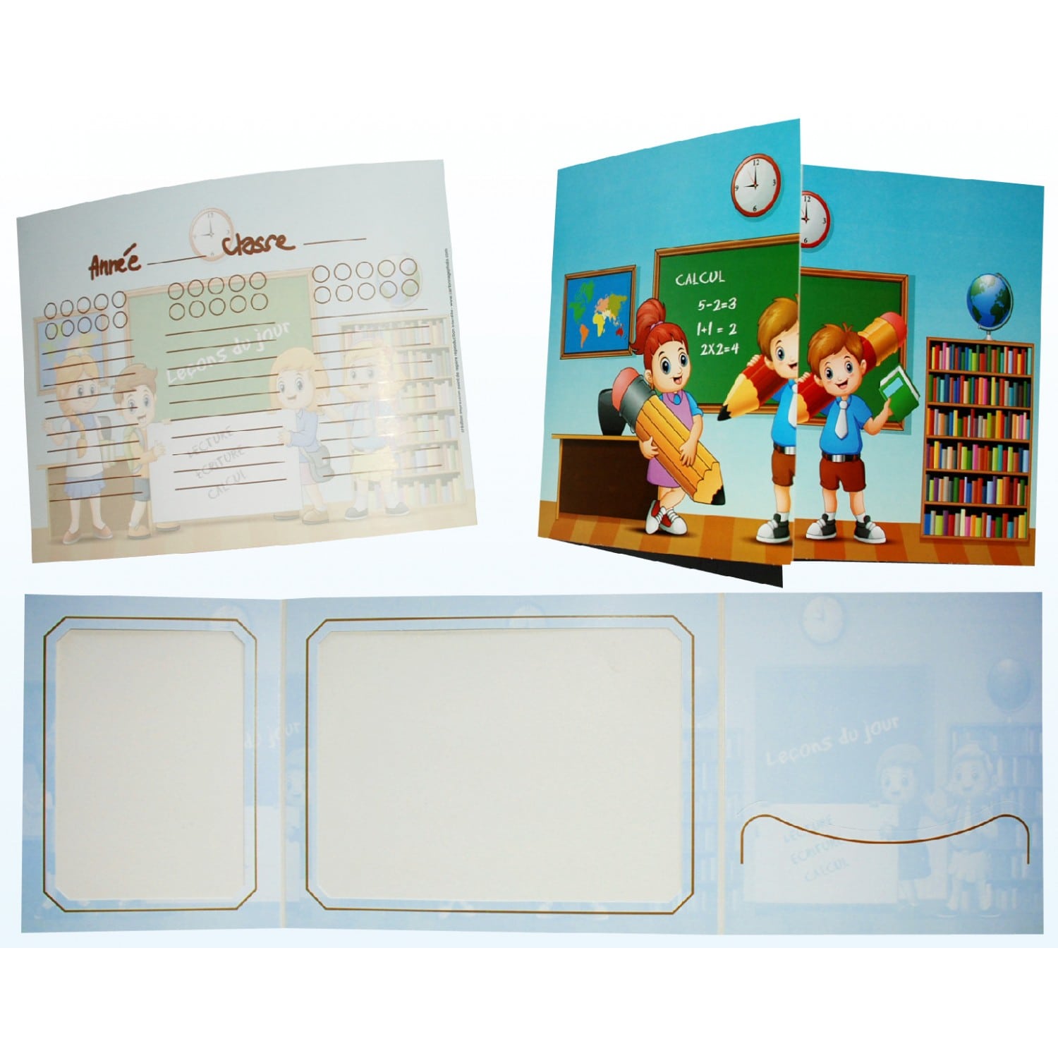 Chemise photo scolaire Collection Leçon du jour - Triptyque pour photos 13x18/18x24 + pochette Lot de 50