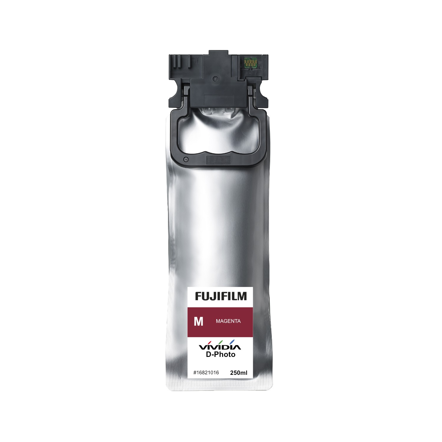 Poche d’encre Vividia D-Photo MAGENTA pour les imprimantes Fuji Frontier DX400. Fuji propose désormais cette encre dans une poche rétractable, plus compactes et écologiques que les cartouches d’encre traditionnelles en plastique. Ce produit d’origine Fuji porte la référence 16821016.