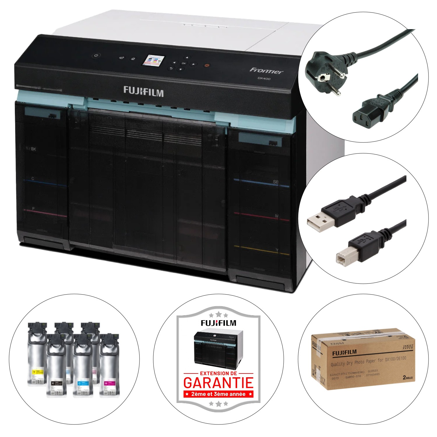 FUJIFILM - Kit imprimante Frontier DX400 + Encres + Papier 152mm brillant + Extension de garantie à 3 ans