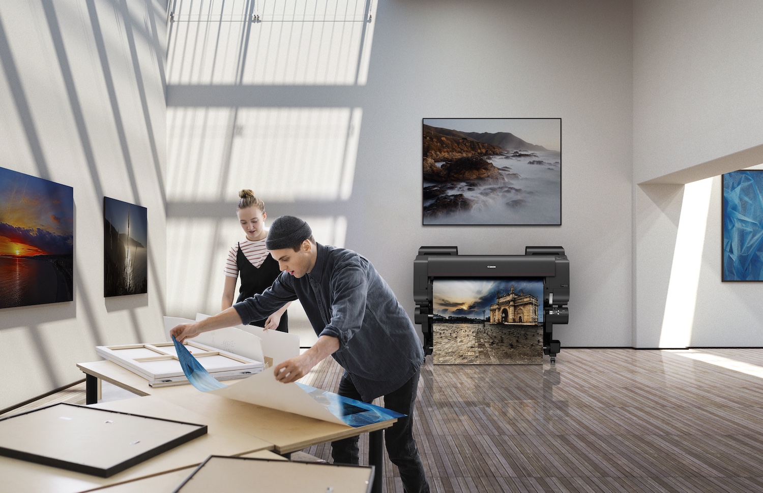 Pour garantir la meilleure qualité possible, l’impression est réalisée sur une imprimante Canon de la gamme imagePROGRAF PRO, associée à des supports médias certifiés. Ce duo technologie/support est un pilier du dispositif : la cohérence entre l’encre, la tête d’impression et le papier assure une reproduction stable, fidèle et durable.