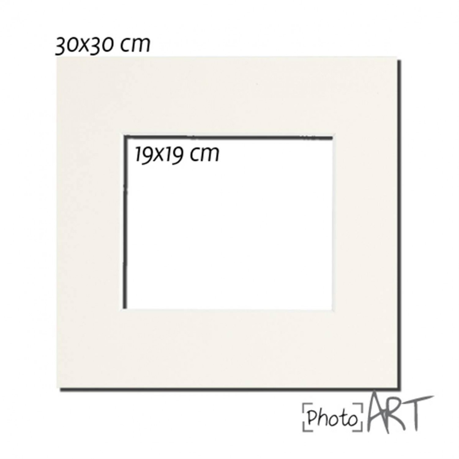 Le passe-partout présente une dimension extérieure de 30x30 cm, standard largement répandu et compatible avec de nombreux cadres du marché. La fenêtre centrale est prévue pour accueillir une image de 20x20 cm, avec une ouverture réelle légèrement inférieure (environ 19x19 cm) afin d’assurer un maintien optimal du visuel sans risque de glissement.