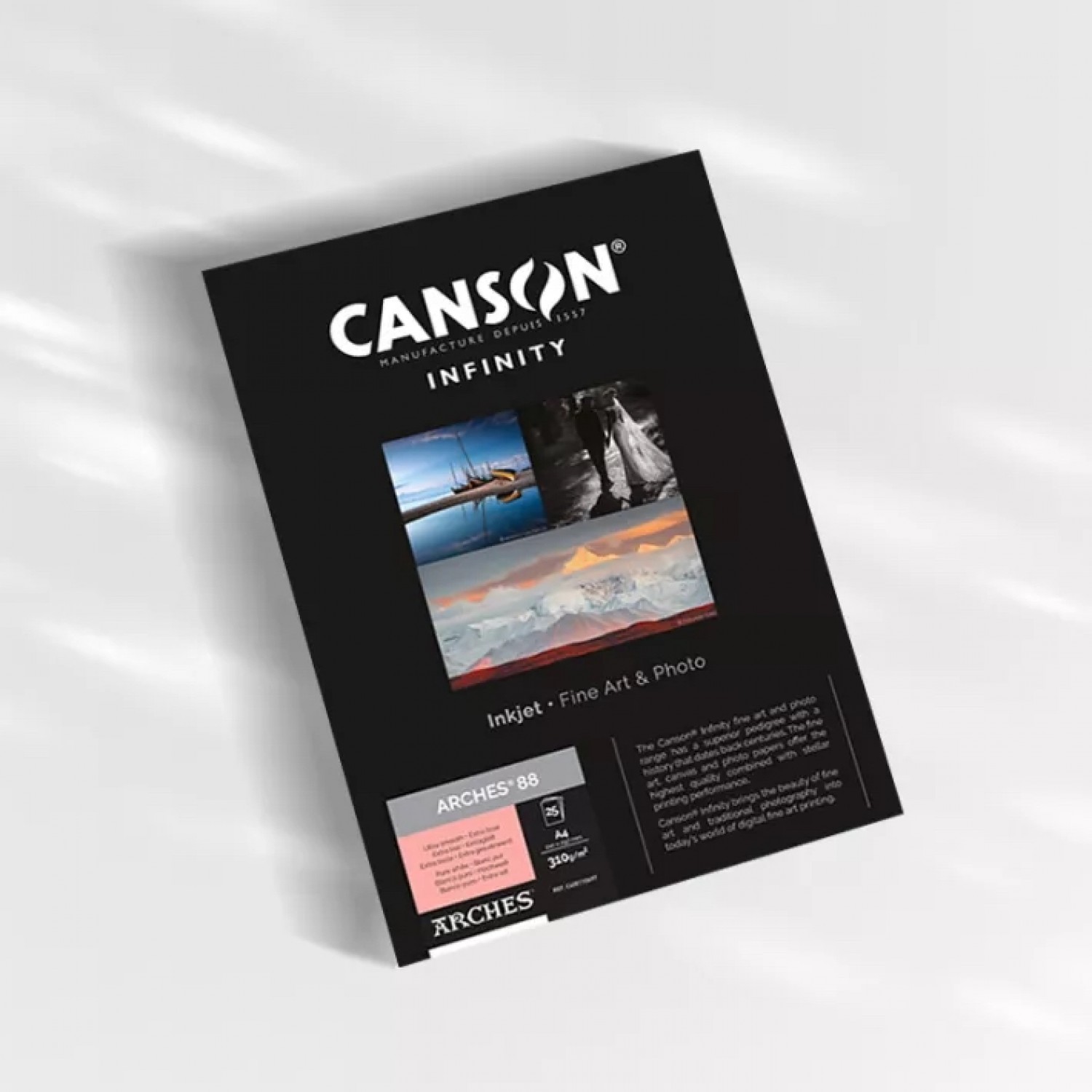Le papier ARCHES 88 s’adresse aux créateurs qui recherchent un support capable de magnifier leur travail sans compromis. Il est particulièrement adapté aux impressions photographiques fine art, aux reproductions artistiques de haute fidélité, aux illustrations détaillées ainsi qu’aux éditions limitées exigeant une conservation irréprochable.